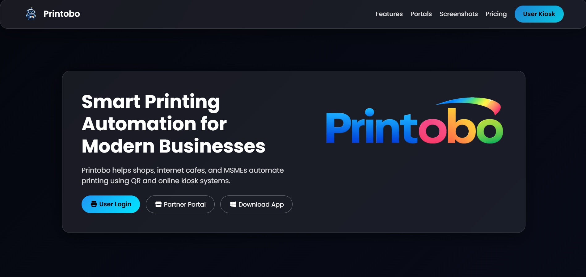 Printobo helps shops, internet cafes, and MSMEs automate printing using QR and online kiosk systems.